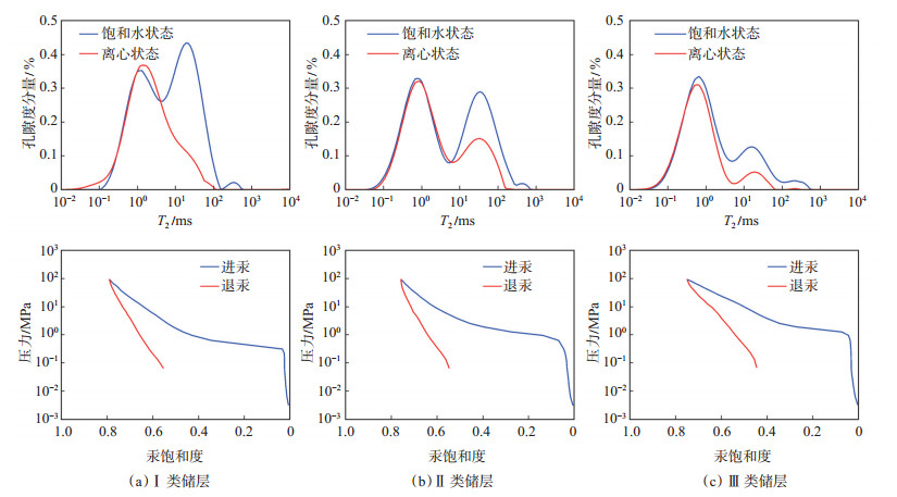 下载eps/tif图 图 5 川西地区蓬莱镇组致密砂岩储层孔隙结构特征 Fig. 5 Pore structure characteristics of tight sandstone reservoir of Penglaizhen Formation in western Sichuan |