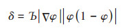 | $ \frac{{\partial \varphi }}{{\partial t}} + \mathit{\boldsymbol{u}}\varphi = \gamma \nabla [\varepsilon \nabla \varphi - \varphi (1 - \varphi )]\frac{{\nabla \varphi }}{{|\nabla \varphi |}} $ | (3) |