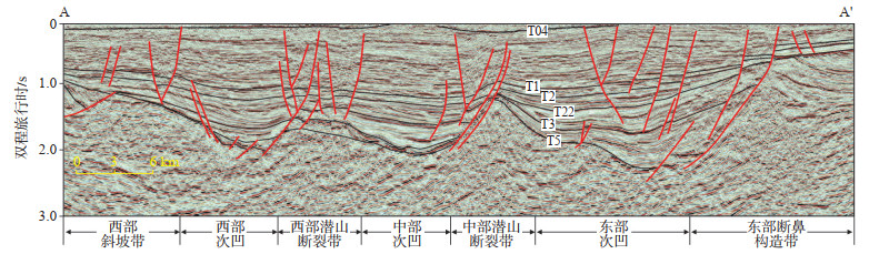 下载原图 图 2 塔南凹陷典型地震剖面 Fig. 2 Typical seismic section of Tanan Depression |