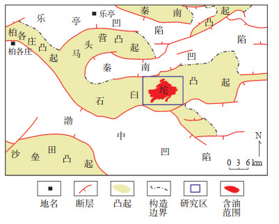 1 油田概况Q油田位于渤海湾盆地渤中坳陷石臼坨凸起的中部(图 1),是一个大型低幅度披覆背斜稠油油藏,主力含油层为新近系明化镇组下段和馆陶组上段,目的层埋深为950~1 430 m,是一套河流相沉积的砂岩储层,其中明下段为曲流河沉积,常发育复合曲流带砂体,自上而下可分为Nm0,NmⅠ,NmⅡ,NmⅢ,NmⅣ,NmⅤ共6个油组,可进一步分29个小层,其中NmⅢ油组内部自上而下细分为NmⅢ 1,NmⅢ2,NmⅢ3,NmⅢ4共4个小层,馆陶组为辫状河沉积。岩性均以细砂岩为主,物性表现为高孔高渗。根据开发管理及构造发育特征,将油田划分为北块、北区、南区和西区共4个开发区块。