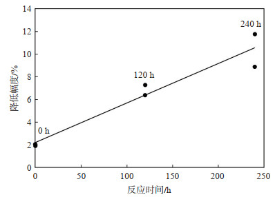 下载原图 图 2 渗透率降幅与反应时间的关系 Fig. 2 Relationship between permeability decrease and reaction time |