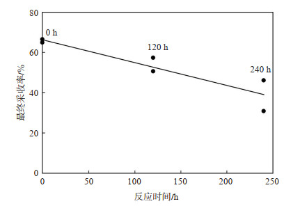 下载原图 图 4 最终采收率与反应时间关系 Fig. 4 Relationship between ultimate recovery and reaction time |