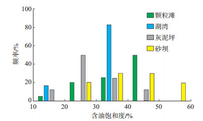 下载原图 图 12 胜北洼陷七克台组二段不同沉积环境含油饱和度分布特征 Fig. 12 Characteristics of oil saturation distribution of different sedimentary environments of the second member of Qiketai Formation in Shengbei sub-sag |