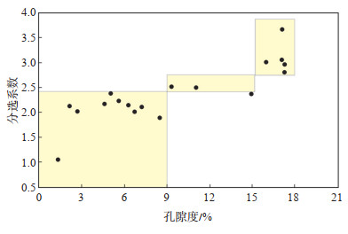 下载原图 图 6 黄骅坳陷北大港潜山区域中生界碎屑岩储层分选系数与孔隙度的关系 Fig. 6 Relationship between sorting coefficient and porosity of Mesozoic clastic reservoirs in Beidagang buried hill, Huanghua Depression |