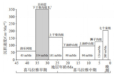 下载原图 图 6 英西地区古近系—新近系各组的沉积速度对比(据文献[16]修改) Fig. 6 Sedimentary velocity comparison of Paleogene-Neogene formations in Yingxi area |