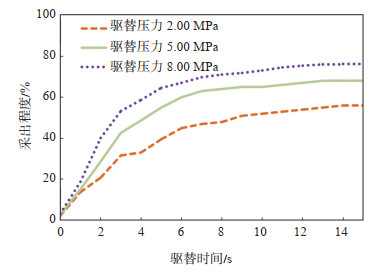 下载原图 图 4 不同驱替压力下采出程度变化曲线 Fig. 4 Recovery degree under different displacement pressure |
