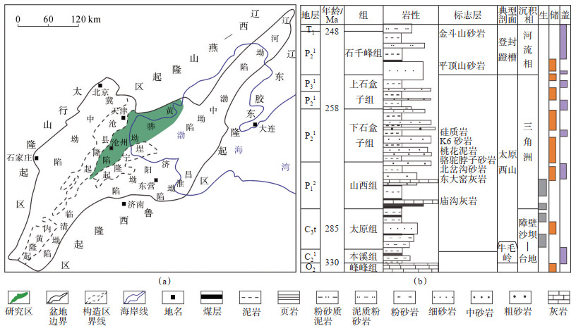 下载原图 图 1 渤海湾盆地埕北断阶带位置(a)及上古生界地层柱状图(b) Fig. 1 Location of Chengbei fault step zone(a)and stratigraphic column of Upper Paleozoic(b)in Bohai Bay Basin |