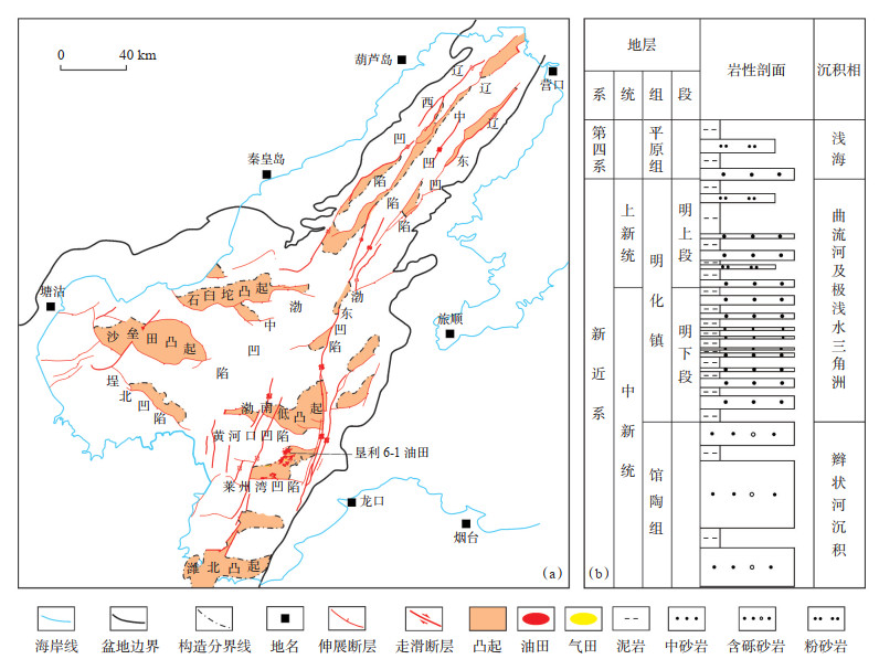 下载原图 图 1 渤海海域垦利6-1油田区域位置(a)及岩性地层综合柱状图(b) Fig. 1 Location(a)and stratigraphic column(b)of Kenli 6-1 oilfield in Bohai Sea |
