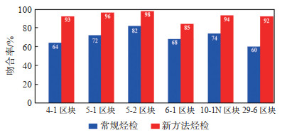 莱北地区垦利6-1油田常规烃检与新方法烃检吻合率统计对比显示,在地震资料改善和储层精细表征基础上开展针对性的烃检技术研究和应用后,莱北地区砂体含油气预测吻合率由70% 提升到93%,岩性油气藏勘探的成功率得到进一步提升(图 10)