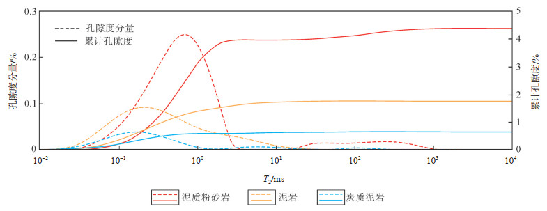 下载原图 图 5 川南地区二叠系龙潭组不同岩性核磁共振法孔隙分布特征 Fig. 5 NMR pore distribution of different lithofacies of Permian Longtan Formation in southern Sichuan Basin |