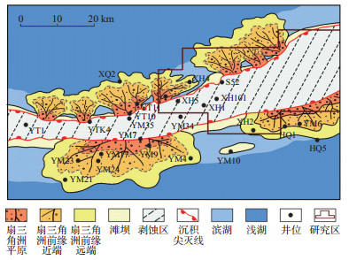 下载原图 图 14 库车坳陷英买力—新和地区白垩系亚格列木组沉积相分布图 Fig. 14 Sedimentary facies distribution of Cretaceous Yageliemu Formation in Yingmaili-Xinhe area, Kuqa Depression |