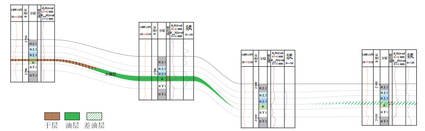 下载原图 图 3 厄瓜多尔奥连特盆地TP油田B油藏岩性尖灭剖面 Fig. 3 Lithologic pinchout profile of reservoir B in TP oilfield, Oriente Basin, Ecuador |