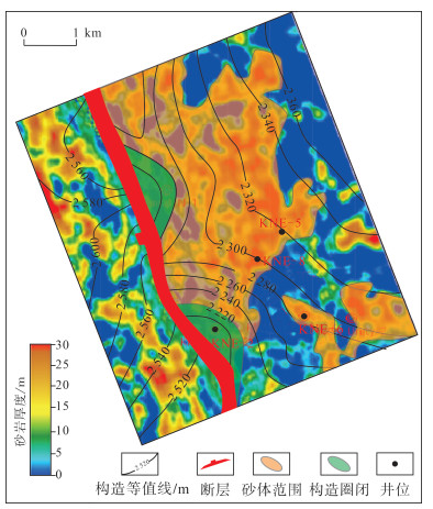 下载原图 图 15 南苏丹Muglad盆地K地区白垩系Aradeiba组砂岩分布与构造叠合图 Fig. 15 Sandstone distribution and structural superposition map of Cretaceous Aradeiba Formation in K area, Muglad Basin, South Sudan |