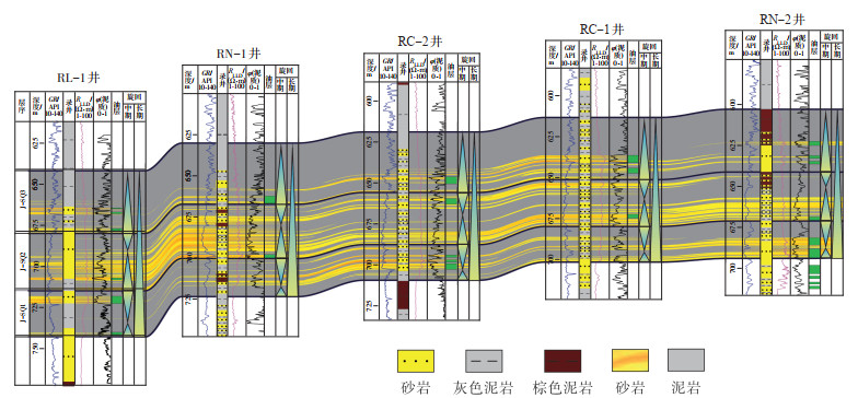 下载原图 图 6 南苏丹Melut盆地A地区新近系Jimidi组连井砂体剖面(据文献[18]修改) Fig. 6 Sandstone correlation profile of Neogene Jimidi Formation in A area, Melut Basin, South Sudan |