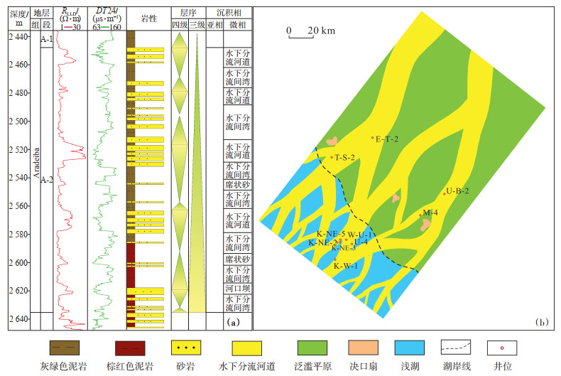 下载原图 图 8 南苏丹Muglad盆地白垩系Aradeiba组岩性地层综合柱状图(a)及Aradeiba组下段沉积相分布(b) Fig. 8 Stratigraphic column(a)and sedimentary facies distribution of the lower member(b)of Cretaceous Aradeiba Formation in Muglad Basin, South Sudan |