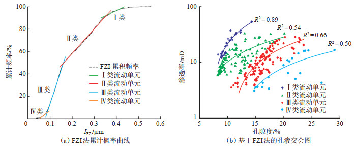 下载原图 图 5 渤海湾盆地F油田古近系沙三中亚段基于流动分层指标法(FZI)划分流动单元 Fig. 5 Flow units division based on FZI method of middle Es3 in F oilfield, Bohai Bay Basin |