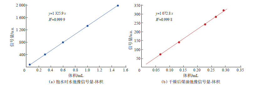 下载原图 图 4 三塘湖盆地侏罗系西山窑组褐煤干燥前后弛豫信号量-孔隙体积标定曲线 Fig. 4 Relaxation signal versus volume calibration curves of lignite samples of Jurassic Xishanyao Formation in Santanghu Basin before and after drying |