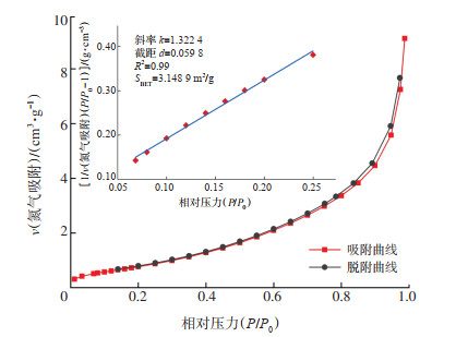 式中:NA为阿伏伽德罗常数;σm为吸附质分子的截面积,m2,氮气σm通常取1.62×10-19 m2;k为B-E-T模型拟合的斜率。