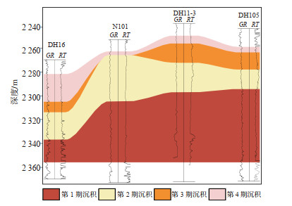 下载原图 图 6 松辽盆地德惠断陷白垩系火三段凝灰岩DH16-N103-DH11-3-DH105井沉积旋回分布 Fig. 6 Distribution of tuff sedimentary cycles of the third member of Cretaceous Huoshiling Formation across wells DH16, N103, DH11-3 and DH105 in Dehui fault depression, Songliao Basin |