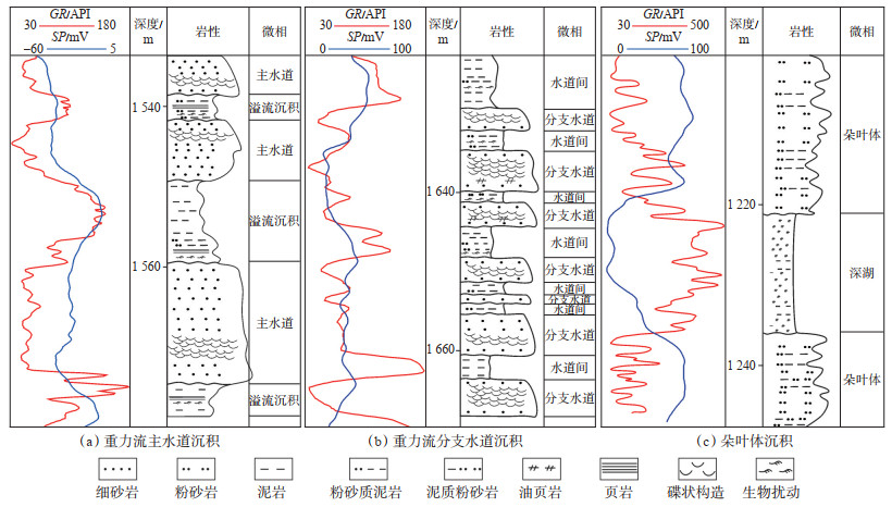 下载原图 图 4 湖底扇不同微相类型测井曲线特征 Fig. 4 Characteristics of logging curves of different sedimentary facies of sublacustrine fan