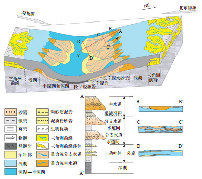 Key words: facies mark    deep water sedimentation    turbidity current    sandy debris flow    sublacustrine fan    Chang 7 reservoir    Triassic    southeastern Ordos Basin