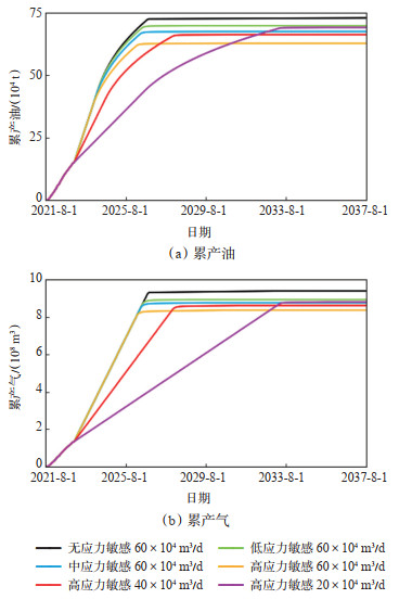 下载原图 图 11 不同应力敏感情况累产对比 Fig. 11 Comparison of cumulative production at different stress sensitive intensities