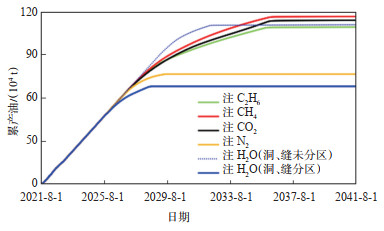 下载原图 图 12 不同注入介质累产油对比 Fig. 12 Comparison of cumulative oil production with different injection media