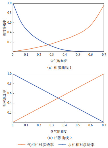 下载原图 图 13 模型的气水相渗曲线 Fig. 13 Gas-water relative permeability curves in simulation