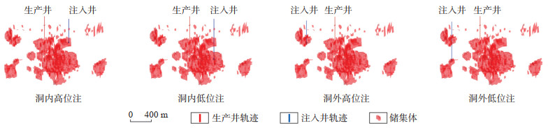 (6)最佳注入部位与储集体分布、连通性、采出井的位置等因素有关,设计注气井时,应尽可能将注气井和采出井部署在同一洞内,同时要保证它们之间有足够距离,有利于对洞内储量的定向驱替,提高波及范围,防止气窜。