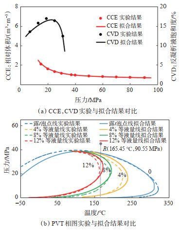 下载原图 图 2 顺北油田二区4号带北段W1井多组分PVT拟合结果 Fig. 2 Multi-component PVT matching results of well W1 in the north of Shunbei No. 4 belt, Shunbei Oilfield