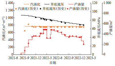 下载原图 图 3 单元生产动态拟合曲线 Fig. 3 Production history matching curves of the simulation model