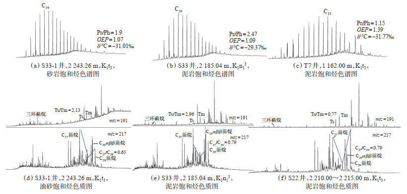 原油的生物标志物组成与其烃源岩生物标志物特征存在继承性关系,因而可通过对比原油与烃源岩的生物标志物组成来找寻两者的亲缘关系,从而确定原油的来源[30-32]。