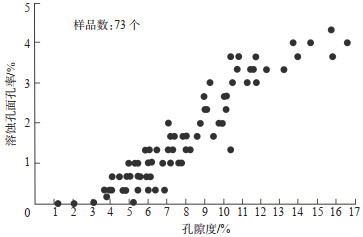 | $ \text { 视溶蚀率 }=\frac{\text { 溶蚀孔面孔率 }}{\text { 总面孔率 }} \times 100 \% $ | (4) |