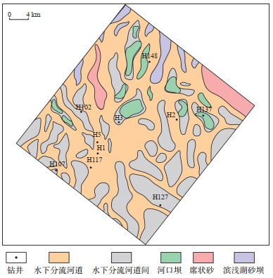 下载原图 图 5 川中HC地区三叠系须二段沉积微相分布 Fig. 5 Distribution of different kinds of micro-sedimentary facies of the second member of Triassic Xujiahe Formation in HC area, central Sichuan Basin |