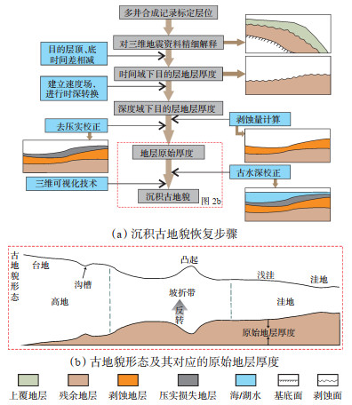 下载原图 图 2 古地貌恢复流程示意图 Fig. 2 Schematic diagram of the paleogeomorphology restoration process |