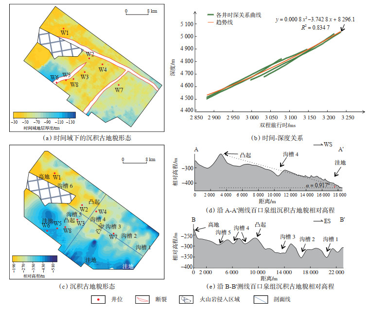 5 结论(1)准噶尔盆地石西地区百口泉组古地貌呈“凸起—沟槽—洼地”组合,西北高、东南低,坡度平缓,西北部为高地,中部和东部发育凸起和6条主干沟槽,向南部和东南部逐渐过渡至3个明显的洼地。