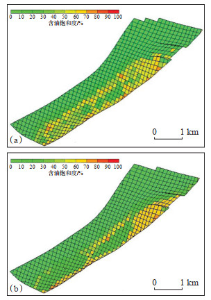 下载原图 图 4 唐海油田T180X2区块寒武系徐庄组(a)和毛庄组(b)碳酸盐岩储层顶部剩余油分布特征 Fig. 4 Distribution characteristics of remaining oil in carbonate reservoirs of the top of Cambrian Xuzhuang Formation and Maozhuang Formation in T180X2 Block, Tanghai Oilfield |