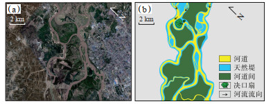 下载原图 图 6 嫩江齐齐哈尔段网状河卫星图像(a)及其网状河沉积微相平面分布特征(b) Fig. 6 Satellite images of the anastomosing river(a)and planar distribution characteristics of sedimentary microfacies in the anastomosing river system(b)in Qiqihar section of Nenjiang River |