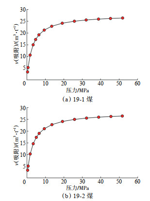下载原图 图 11 四川盆地遂宁—合江地区二叠系龙潭组19号煤等温吸附曲线 Fig. 11 Isothermal adsorption curve of No. 19 coal of Permian Longtan Formation in Suining-Hejiang area, Sichuan Basin |