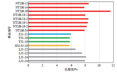 下载原图 图 6 四川盆地遂宁—合江地区二叠系龙潭组煤岩孔隙度柱状图 Fig. 6 Columnar diagram of porosity of coal rock from Permian Longtan Formation in Suining-Hejiang area, Sichuan Basin |