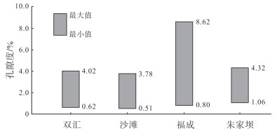 下载原图 图 5 四川盆地北缘寒武系仙女洞组孔隙度分布(据文献[34]修改) Fig. 5 Porosity distribution of Cambrian Xiannüdong Formation, northern Sichuan Basin |