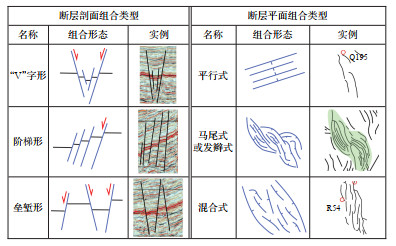 下载原图 图 2 松辽盆地南部余字井地区断裂剖面及平面组合形态特征 Fig. 2 Cross-section and planar combination characteristics of faults in Yuzijing area, southern Songliao Basin |