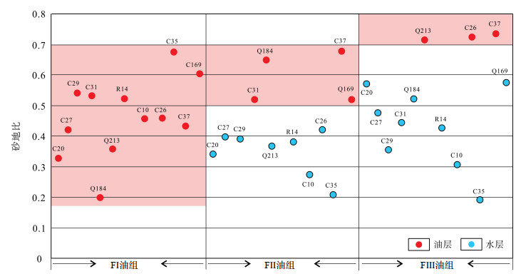 下载原图 图 8 松辽盆地南部余字井地区泉四段扶余油层FⅠ—FⅢ油组砂地比与油气分布关系 Fig. 8 Relationship between sand to mud ratio and hydrocarbon distribution of FⅠ—FⅢ oil groups of Fuyu oil layer in the 4th member of Quantou Formation, Yuzijing area, southern Songliao Basin |