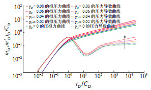 下载原图 图 6 水平井油气两相流物理模型中无因次应力敏感系数γD的敏感性分析曲线 Fig. 6 Sensitivity analysis of γD in physical model of oil-gas two-phase flow of horizontal well |