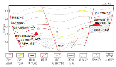 下载原图 图 7 银额盆地白垩纪箕状断陷油气成藏模式 Fig. 7 Oil and gas accumulation models of Cretaceous dustpan-shaped fault depression in Yin'e Basin |