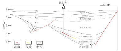 这个阶段确定了以下白垩统为目的层,以断鼻、断背斜圈闭为主的油气成藏模式,优选了查干德勒苏坳陷、苏红图坳陷和居延海坳陷油气远景区[7-8, 19],为此后查干凹陷、哈日凹陷和天草凹陷发现工业油气流奠定了基础。受当时构造控藏认识的限制,主要寻找构造型油气藏,井点处于背鼻、断背斜以及砂体上倾尖灭的高部位(图 5),但钻井揭示下白垩统碎屑岩储层物性普遍较差[20-23],平均孔隙度为1.7%~8.4%,平均渗透率为0.01~4.40 mD,属于特低孔、特低渗储层,没有实现工业油气流发现。
