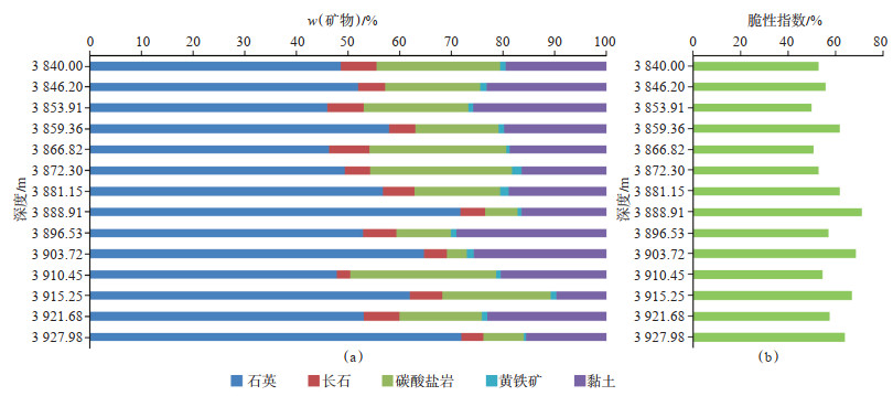 | $ B_1=\frac{w_{\text {石英 }}}{w_{\text {石英 }}+w_{\text {碳酸盐矿物 }}+w_{\text {黏土 }}} \times 100 \% $ | (1) |