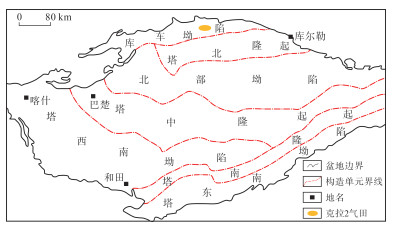 下载原图 图 1 塔里木盆地克拉2气田区域构造位置 Fig. 1 Regional structural location of Kela 2 gas field in Tarim Basin |