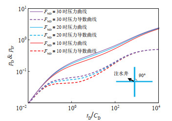 下载原图 图 11 大孔道导流能力对压力动态曲线的影响 Fig. 11 Influence of diversion capacity of flow channels on pressure transient curves |