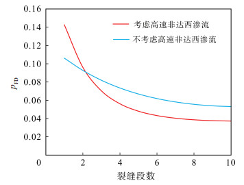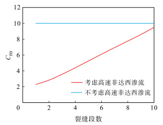 下载原图 图 12 高速非达西数对生产动态的影响 Fig. 12 Influence of high-velocity non-Darcy on production dynamics |